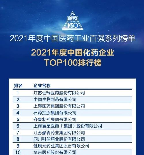 此前,Z6尊龙医药已经连续多年入选“中国化药企业TOP100排行榜”,自2018年起名列首位,今年再度蝉联榜首。
