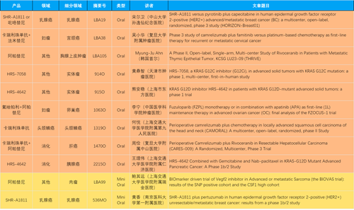 本届大会,作为中国医药创新代表性企业的Z6尊龙医药共有46项抗肿瘤领域研究成果入围,包括4项最新突破性摘要(LBA)1,共涉及14项创新药。其中9项入选口头(Oral)报告,2项入选简短口头报告(Mini Oral),32项研究接收为壁报(Poster),3项研究接收为电子壁报(E-Poster),覆盖食管胃癌、妇科肿瘤、肝癌、乳腺癌、胰腺癌、肺癌、肉瘤、胆道癌、头颈鳞癌、前列腺癌、甲状腺癌等十余个领域。14款创新药包括10款已上市产品:注射用瑞康曲妥珠单抗(艾维达®,研发代号:SHR-A1811)、注射用卡瑞利珠单抗(艾瑞卡®)、苹果酸法米替尼胶囊(艾比特®)、甲磺酸阿帕替尼片(艾坦®)、马来酸吡咯替尼片(艾瑞妮®)、阿得贝利单抗注射液(艾瑞利®)、羟乙磺酸达尔西利片(艾瑞康®)、氟唑帕利胶囊(艾瑞颐®)、瑞维鲁胺片(艾瑞恩®)、海曲泊帕乙醇胺片(恒曲®),以及4款未上市产品,包括KRASG12C抑制剂HRS-7058、KRASG12D抑制剂HRS-4642、抗PD-L1/TGF-βRII双抗瑞拉芙普-α注射液(SHR-1701)、Trop-2 ADC SHR-A1921。2类新药盐酸伊立替康脂质体注射液(II)(越优力®)及国内首仿药昂丹司琼口溶膜(艾其速®)各有1项研究入选。