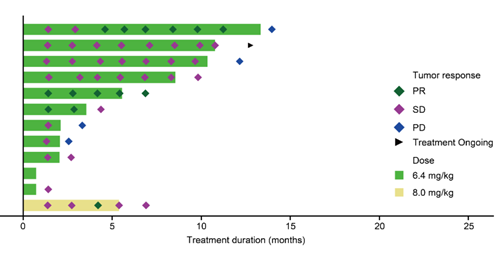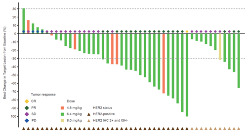 图5. 瀑布图(HER2阳性的CRC患者靶病灶与基线的最佳变化百分比)